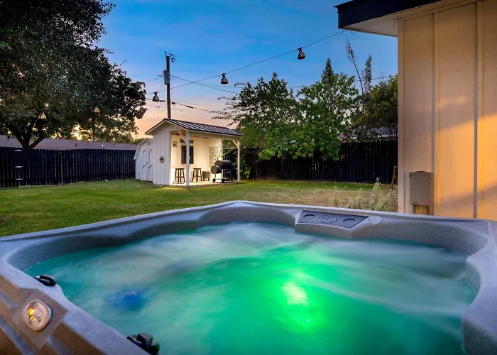**Welcome to Home & Vine - Hot Tub Fire Pit & Outdoor Oasis**, a serene haven nestled just a stone's throw from the vibrant essence of Fredericksburg. This exquisite retreat, located 100 kilometers from the bustling San Antonio International Airport, offers guests an unparalleled mix of relaxation and luxury, ensuring both easy accessibility and a tranquil environment that feels worlds away.